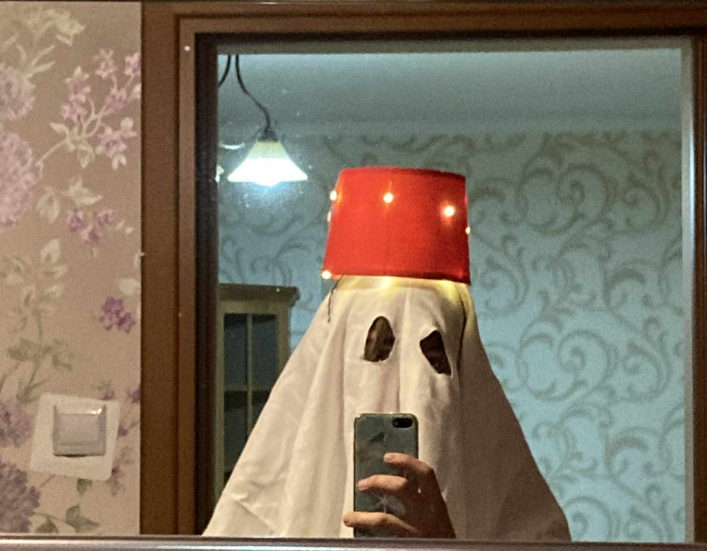 But my super cool lamp hat was 200km away now, so I came up with a new costume, this time it was a ghost of a lamp. Also this party